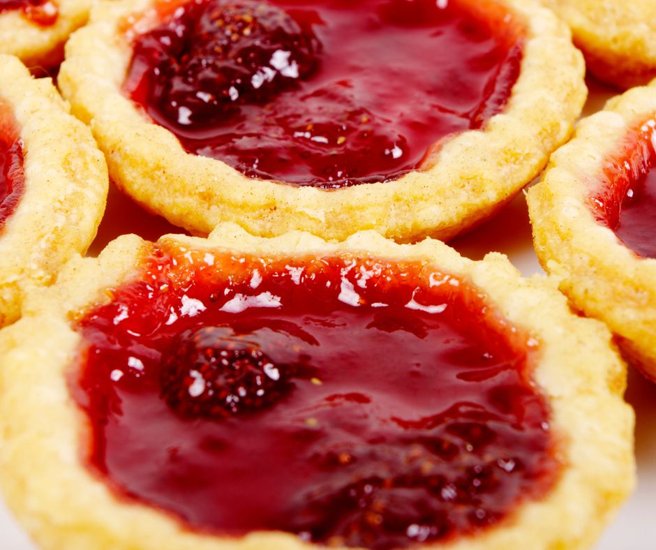 Make jam tarts by rolling out some shortcrust pastry. Cut out the jam tart base, put in a baking tray, fill with jam and bake until golden. Lovely.